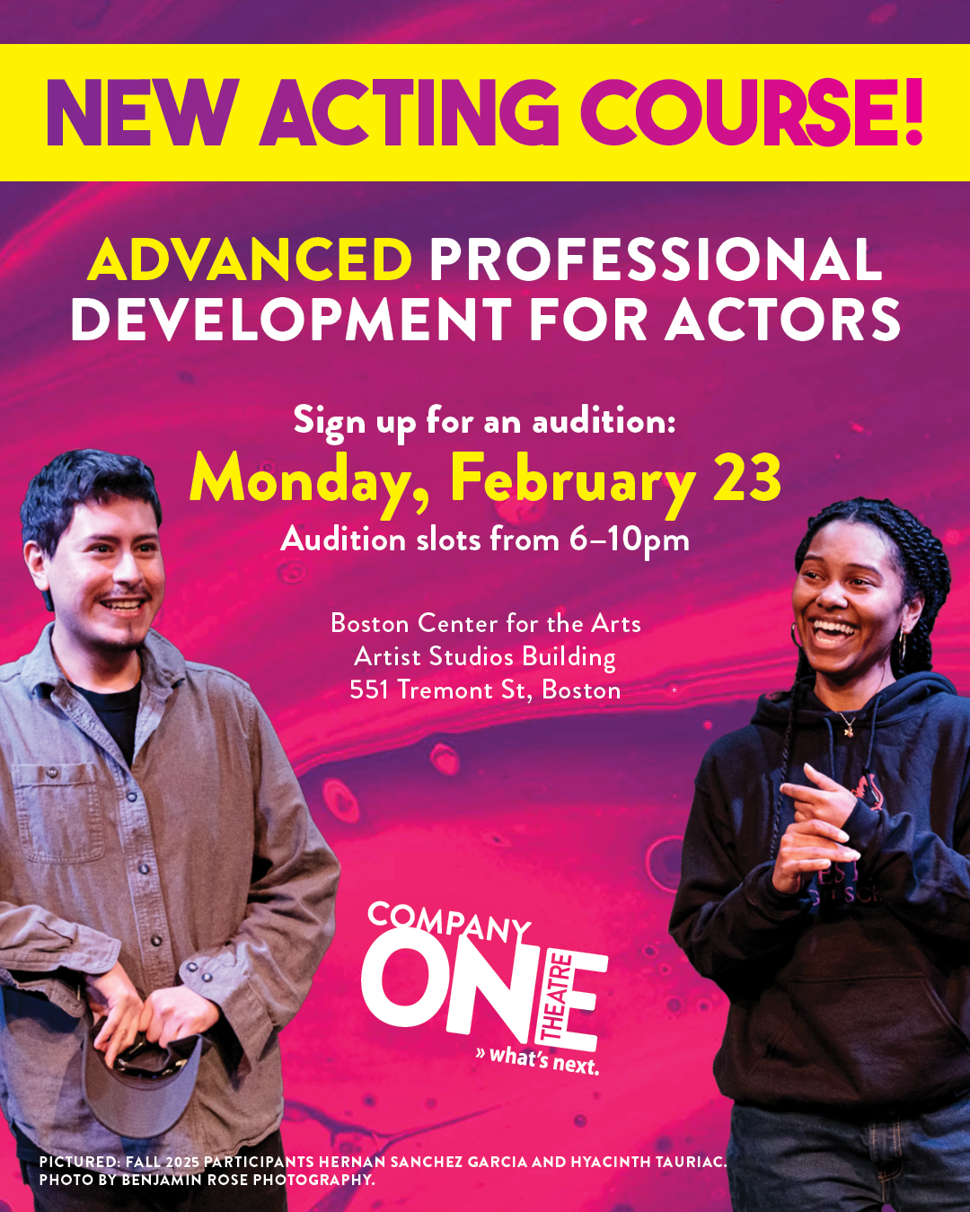 Join Company One Theatre and friends for a night of tasty bites and signature cocktails, dynamic performances, and a dance party you won’t forget — all while supporting Boston’s Theatre for the People! Investing in locally-rooted art, community-led social action, and the vibrancy of our city’s neighborhoods is especially necessary right now. We’re excited to gather at the top of Northeastern’s beautiful East Village to support this vital work during C1’s biggest party of the year!